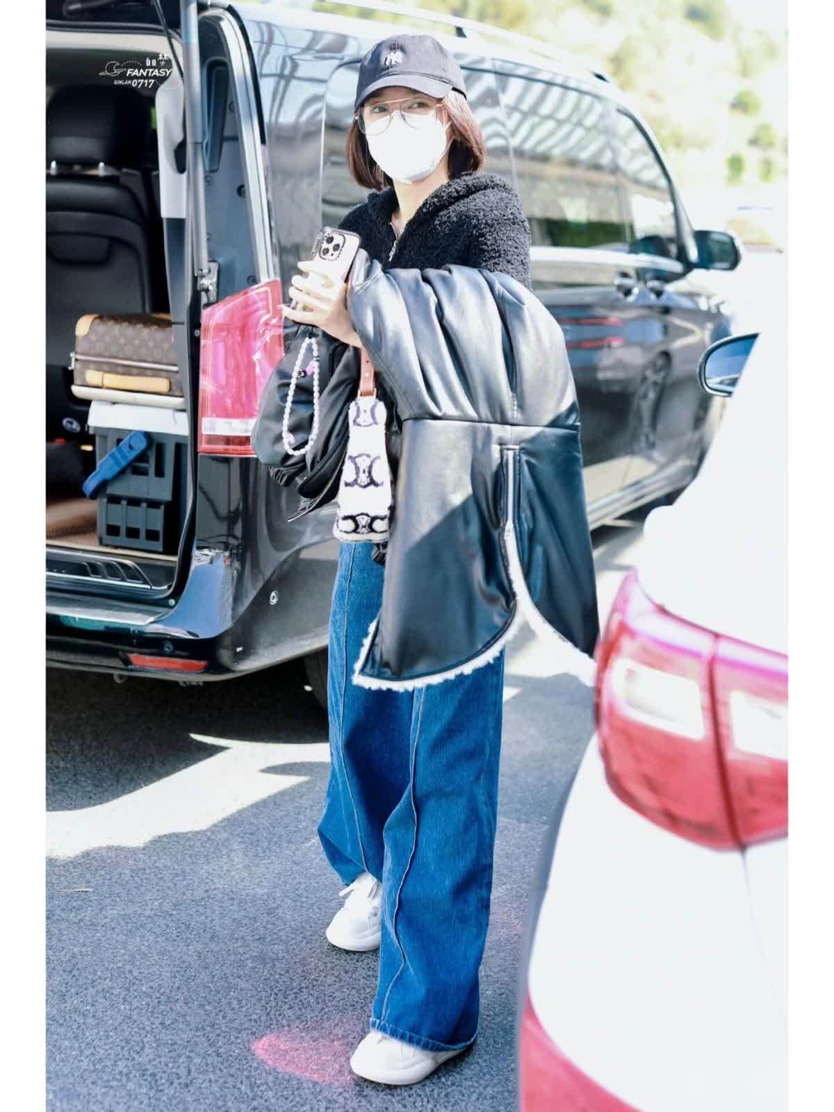 脚上是一双白色的鞋子,只要内里是加绒的,冬天穿完全可以。